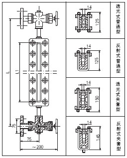 液位計上、下端安裝法蘭與容器相連構成連通器, 透過玻璃可直接觀察到容器內液位的實際高度。