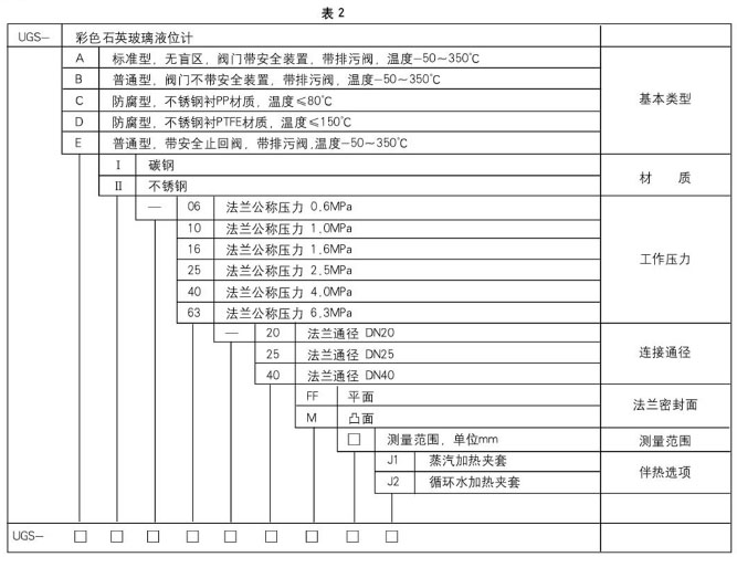 UGS系列彩色石英玻璃液位計是成豐儀表采用高純度石英管生產(chǎn)制造的現(xiàn)場顯示液位計。該儀表顯示清晰,密封性能好,耐高溫、高壓、防粘稠,使用壽命長,沖洗、維護方便,廣泛用于是有、化工、電力、冶金等行業(yè)中各種容器及鍋爐的液位檢測指示。 UGS-A標準型:適用于透明或半透明介質(zhì)。儀表顯示無盲區(qū)。 UGS-B/E普通型:適用于透明或半透明介質(zhì)。但儀表顯示有盲區(qū)。 UGS-C防腐型:適用于鹽酸等酸性、堿性液體和有機溶劑,但不適用于濃縮硝酸、鉻酸混合物、含氯溶劑、脂肪族、芳香烴等介質(zhì)的測量。 UGS-D防腐型:適用于腐蝕性介質(zhì)且工作溫度又較高的場合的液位測量,由于采用不銹鋼內(nèi)襯聚四氟乙烯三通和直管組合,可靠性高。但缺點是上下有測量盲區(qū)。 |