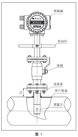 結(jié)構(gòu)組成:插入式電磁流量計由測量頭、標向桿、插入機構(gòu)和轉(zhuǎn)換器等組成。