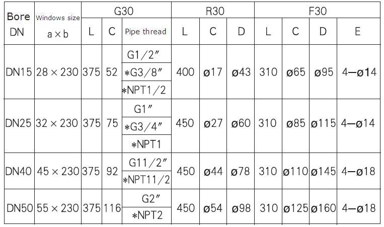 G/R/F10, 20, 30 glass tube rotameter has three types of connection: pipe thread (G10 type), hose pipe (R10 type) and flange ( F10 type). Its maximal working pressure and maximalworking temperature are higher than other glass tube rotameters with the same bore. It's divided into normal type (Measuring general noncorrosive fluid) and corrosion resistant type (Measuring corrosive fluid.). The meter is featured with compactness, light structure, nice looking, convenient maintenance, safe and reliability, easy installation.The flange of F10 type can rotate to be aligned with the pipe holes on the spot vessel.