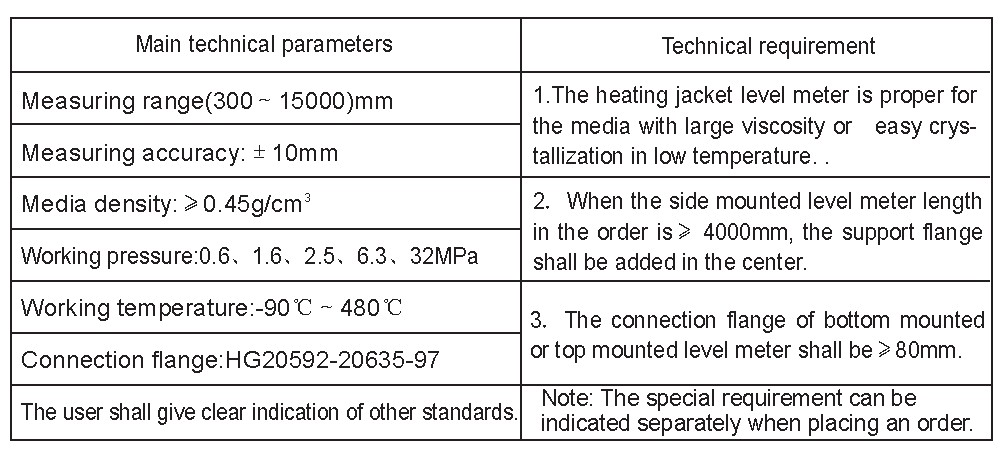 Level meter structure bases on the principle of bypass,the liquid lever in the main pipe is as same as that in the vessel device.According to Archimedes Theorem,the buoyancy force of magnetic float in the liquid is equal to the floater weight ,floater floats on the surface of liquid,the floater in the main pipe of level meter will move up and down with the movement of level in the vessel measured.The permanent steel magnet in the floater will turn 180° through the red-white turn post in the magnetic coupling drive indicator.When liquid lever rises, the turn post turns white side to red one,when the lever lowers,turn post turns red side to white one.The red and white interface of indicator is the actual height of media level in the vessel.Thus the level indication is realized.