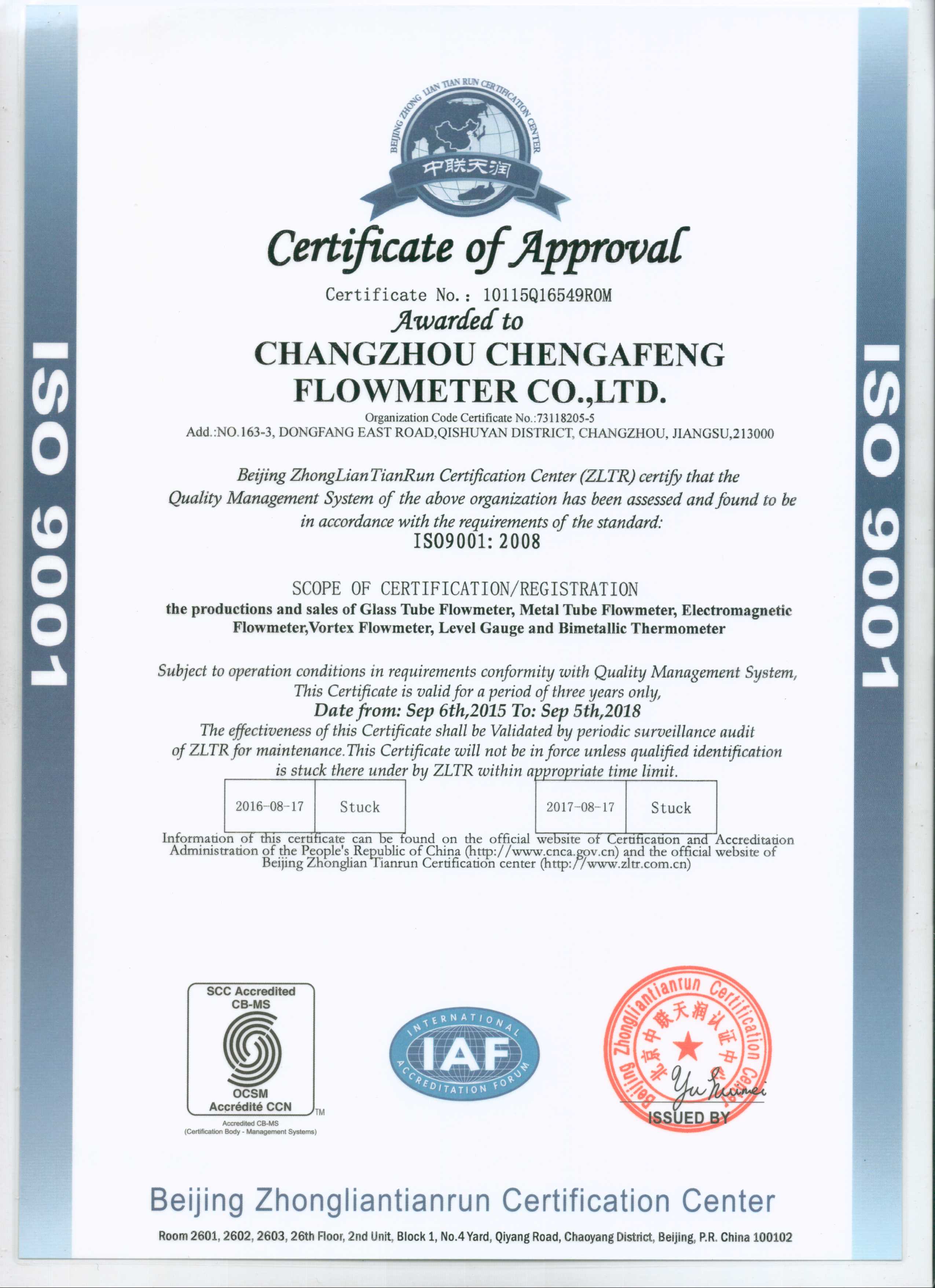 Changzhou Chengfeng Flowmeter Co.,Ltd for 30 years, has been in the study and progress, learning advanced foreign instrumentation equipment and technology, the introduction of advanced technology, and then based on the research and development of new technology, combined with the requirements of customers innovative products that meet customer needs, meet the requirements of customers, the pursuit of perfect quality, technical breakthroughs.